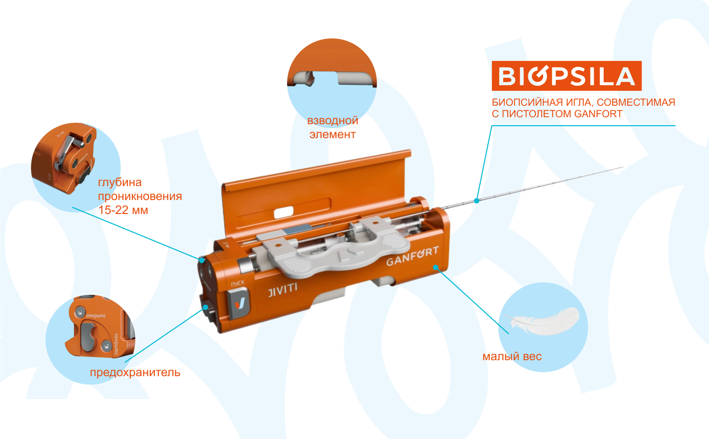 Компания JIVITI разработчик и производитель специализированных медицинских устройств для онкологии и хирургии, предлагает широкий ассортимент медицинских игл для биопсии применяющиеся в исследовании мягких тканей: молочной железы, предстательной железы, щитовидной железы, легких, печени, почек, простаты, селезенки, лимфоузлов и т. д.